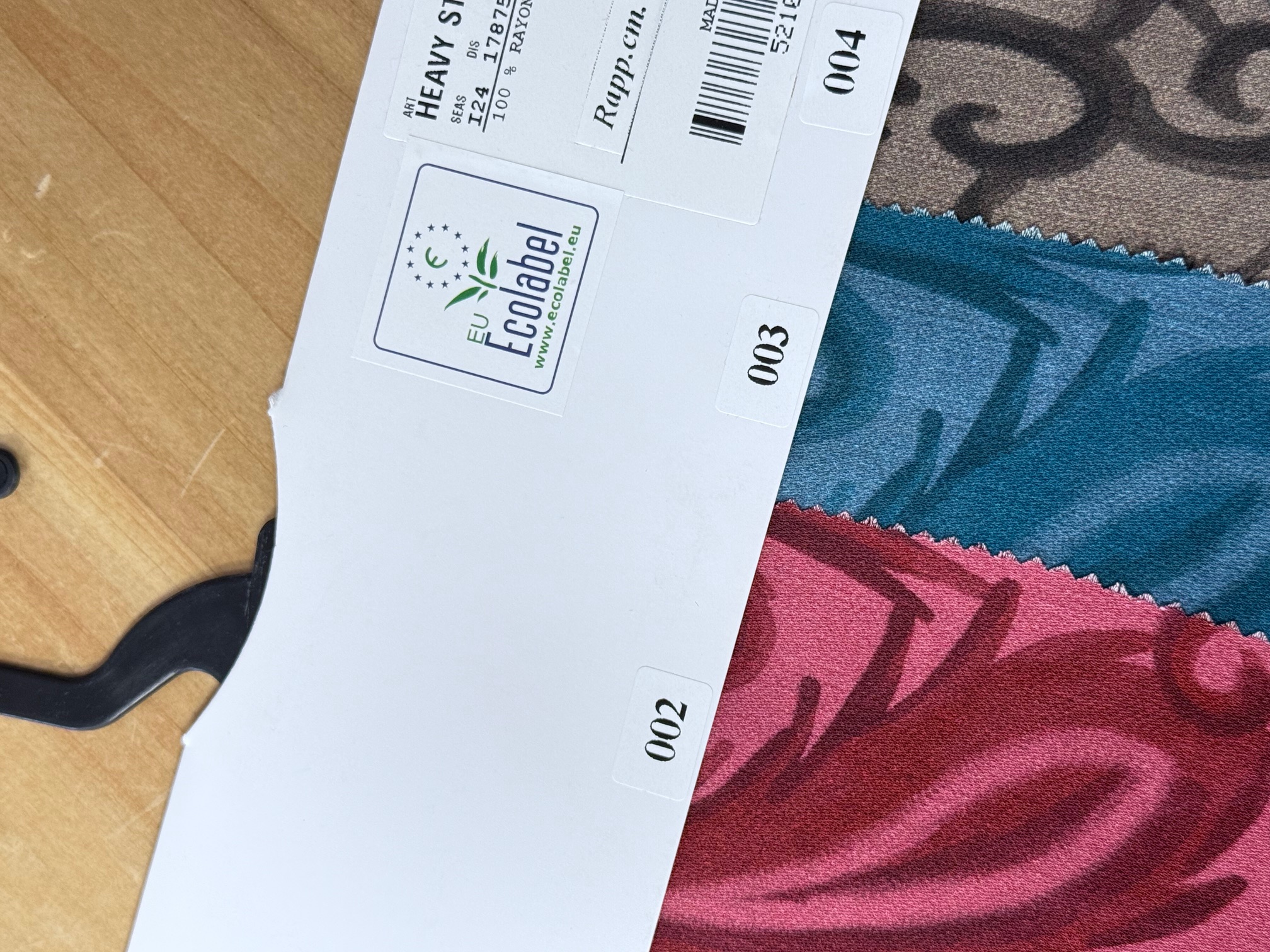 La mayoría de nuestros prints de punto cuentan con el certificado europeo Ecolabel, un sello que garantiza que el proceso de fabricación cumple con altos estándares medioambientales: menos agua, menos energía y tintes más respetuosos con el planeta.