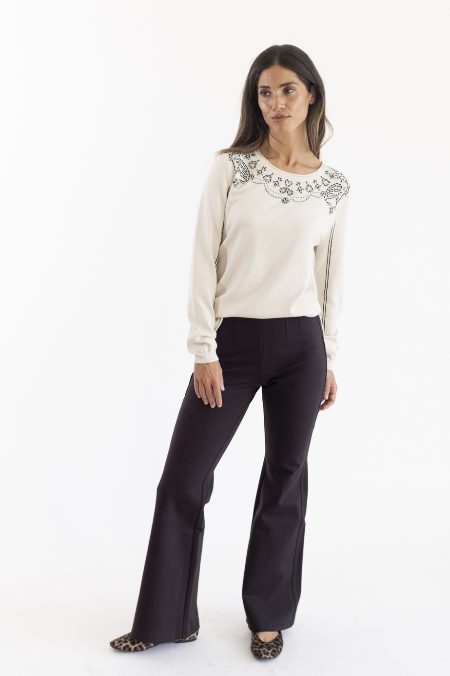 PANNA – El imprescindible moderno. Con estilo de 5 bolsillos y pernera ligeramente acampanada, es una opción cómoda y actual que combina con todo. Un básico que nunca falla.