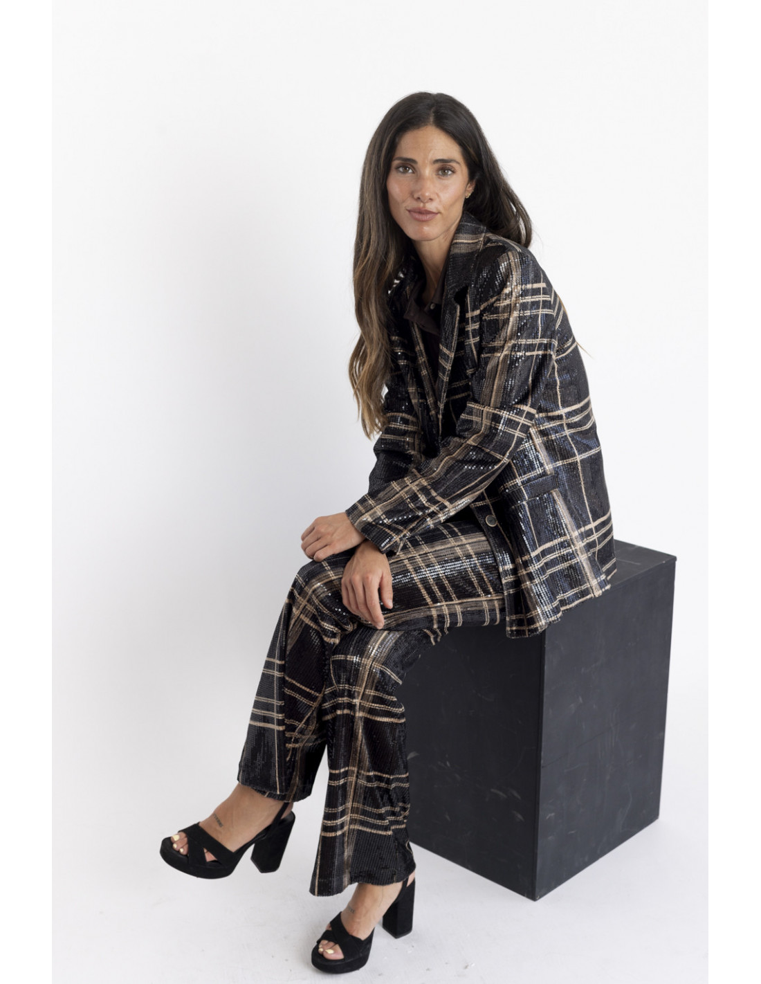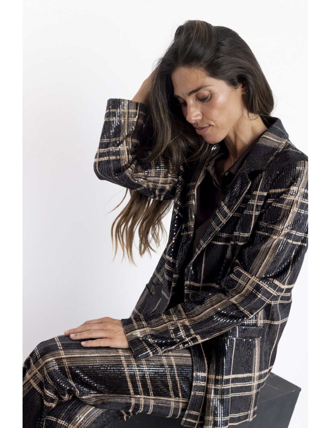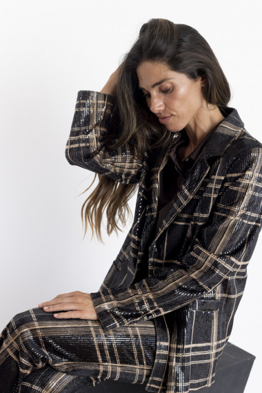 La blazer SMART, un patrón impecable. El estampado de cuadros con decorado de lentejuelas transparentes creando un sutil brillo hace que esta prenda sea tan especial.