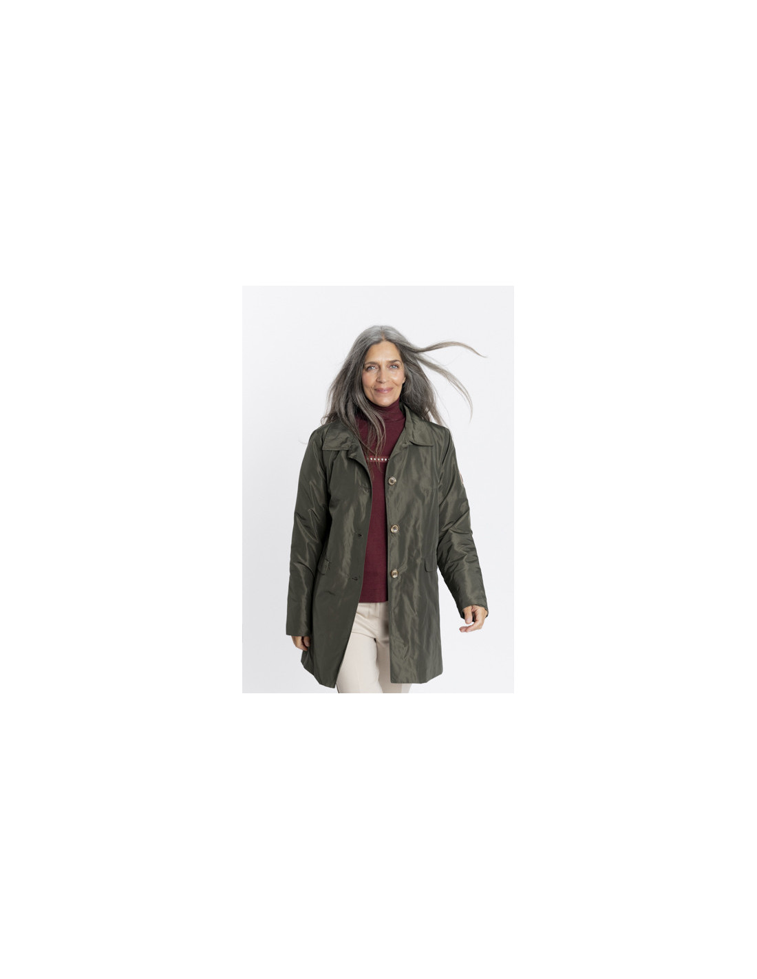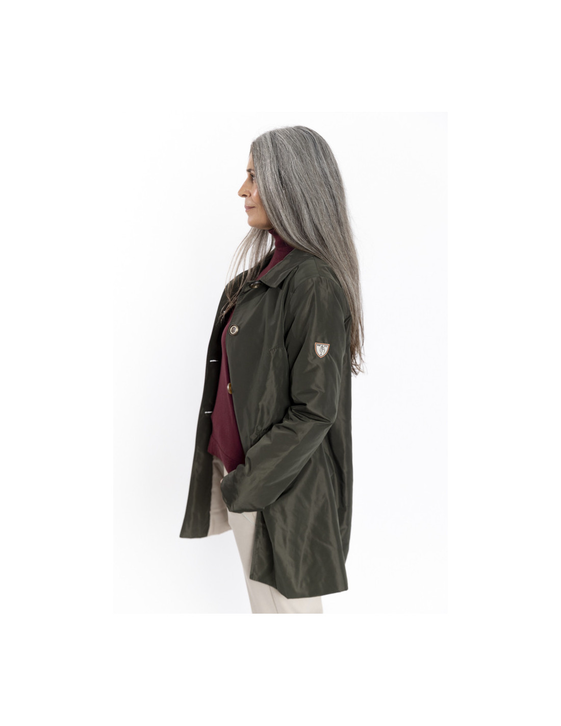 Su interior acolchado le añade una capa extra de confort y abrigo, convirtiéndola en la aliada perfecta para los días frescos de entretiempo. Mantiene la estructura de una gabardina tradicional, pero con el beneficio del calor y la suavidad que aporta su interior.
