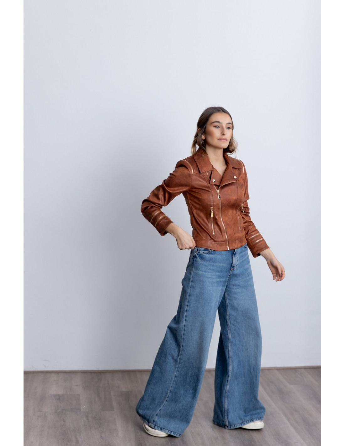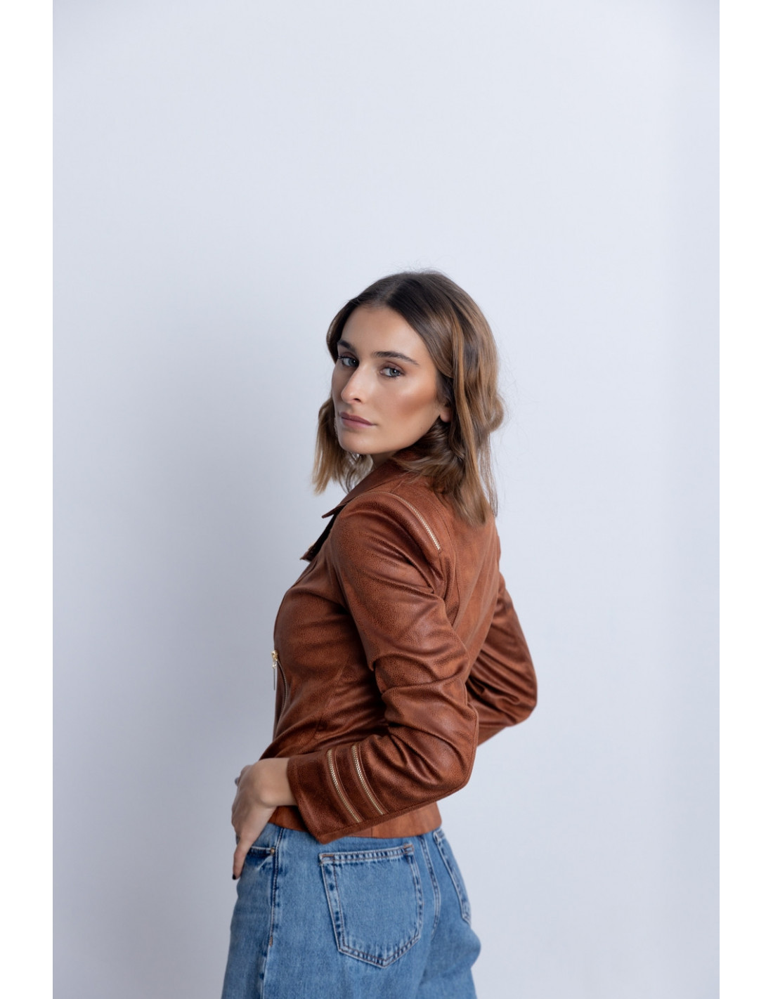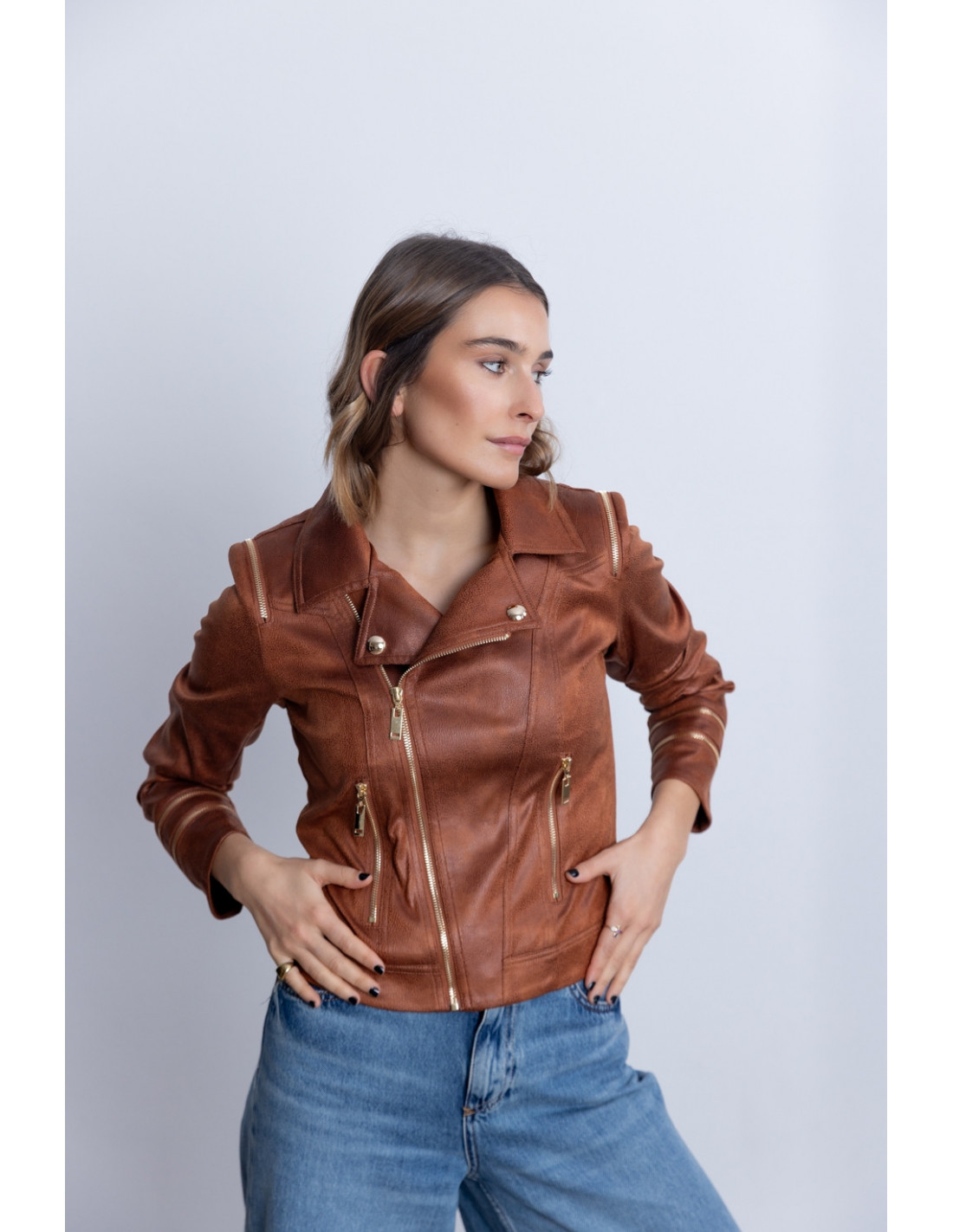Cazadora Entallada Cognac Con Cremalleras BMB & Co.