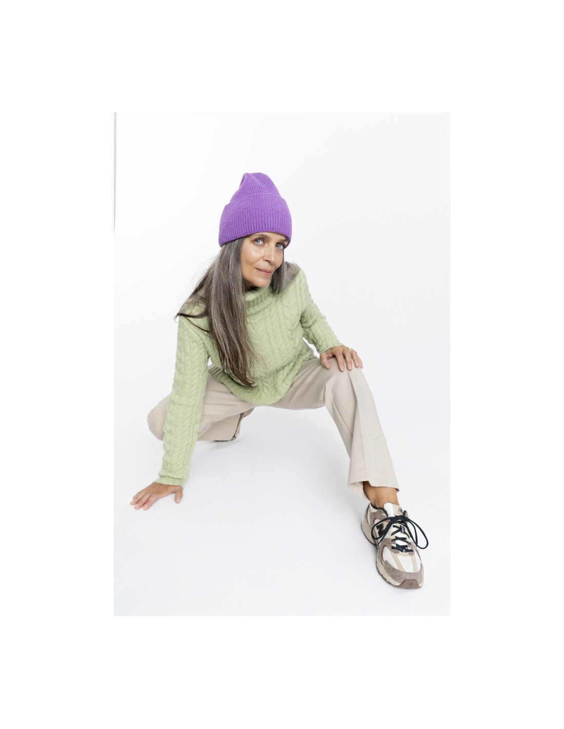 Dale un toque de color y calidez a tus días fríos con nuestro gorro de lana lila. Su diseño clásico de punto grueso ofrece una textura suave y confortable, ideal para mantenerte abrigada sin perder estilo. Fabricado con una mezcla de lana de alta calidad, proporciona una sensación cálida y transpirable. Su tono verde vibrante combina fácilmente con looks urbanos o de montaña, aportando un aire fresco y moderno.
