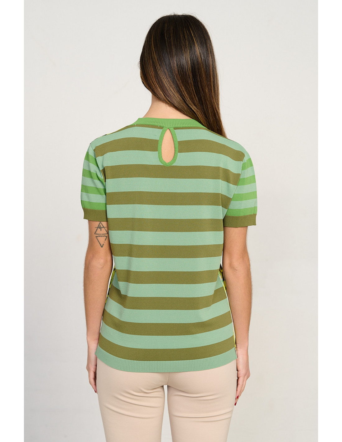 Jersey estampado tropical escote pico manga corta BMB & Co. vista trasera