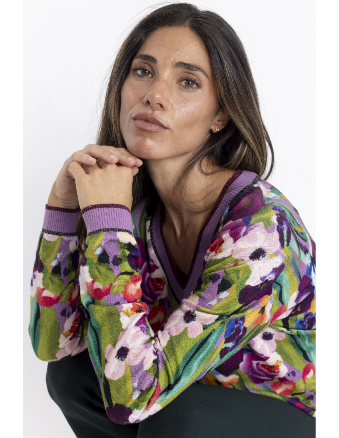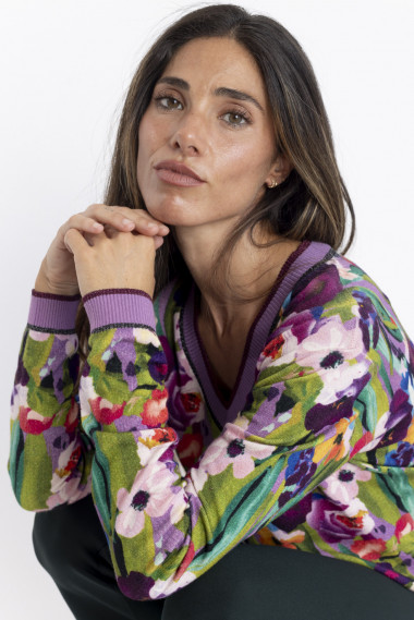 Un jersey con print floral, sus tonos otoñales y su patrón simple hacen que combine con cualquier prenda.