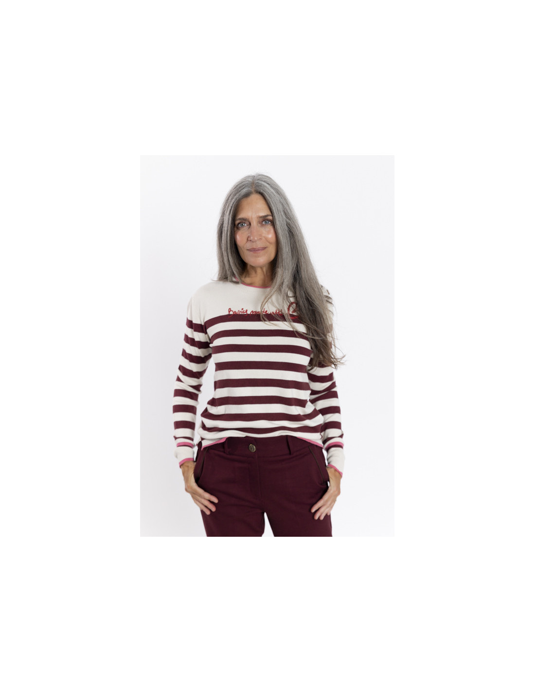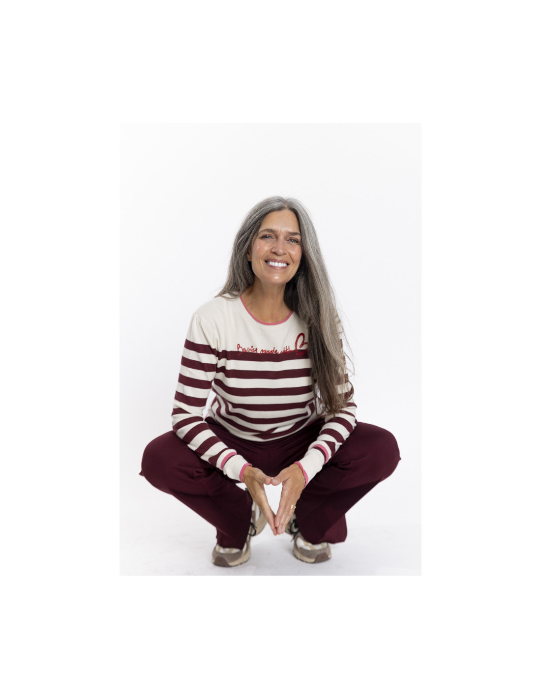 El clásico del jersey marinero en tonos tan tendencia este otoño como el grante. Su efecto segunda piel y su versatilidad harán que esta pieza se convierta en un must en tu armario.
