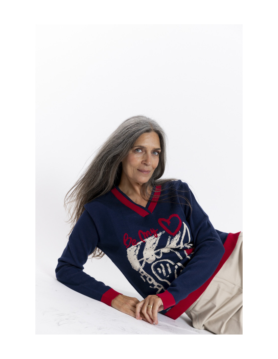 Este jersey de algodón es una opción clásica para el inicio de temporada. Su motivo de intarsia y sus tonos marineros hacen que puedas combinarlo de mil maneras.