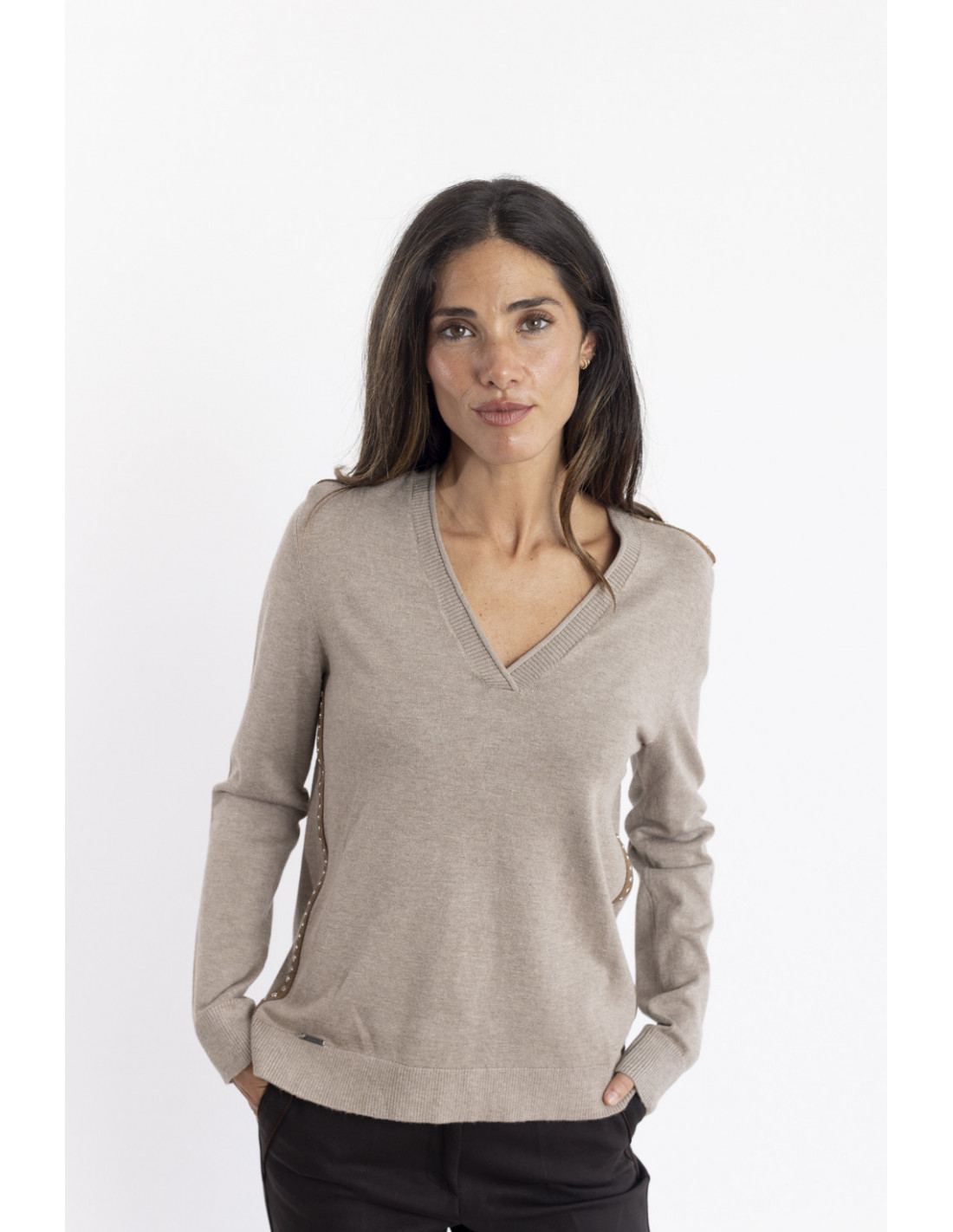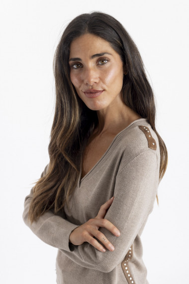 Jersey Punto Fino Camel Escote Pico BMB & Co.