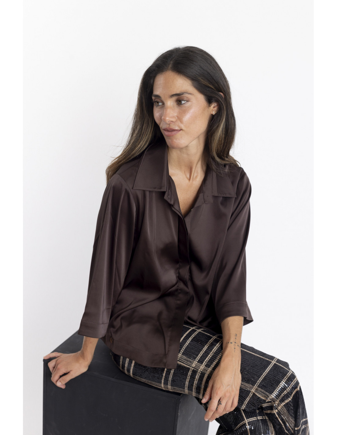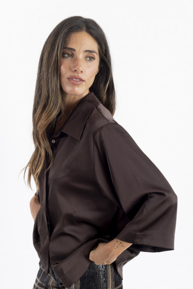 Blusa Satinada Chocolate Mangas Amplias BMB & Co.