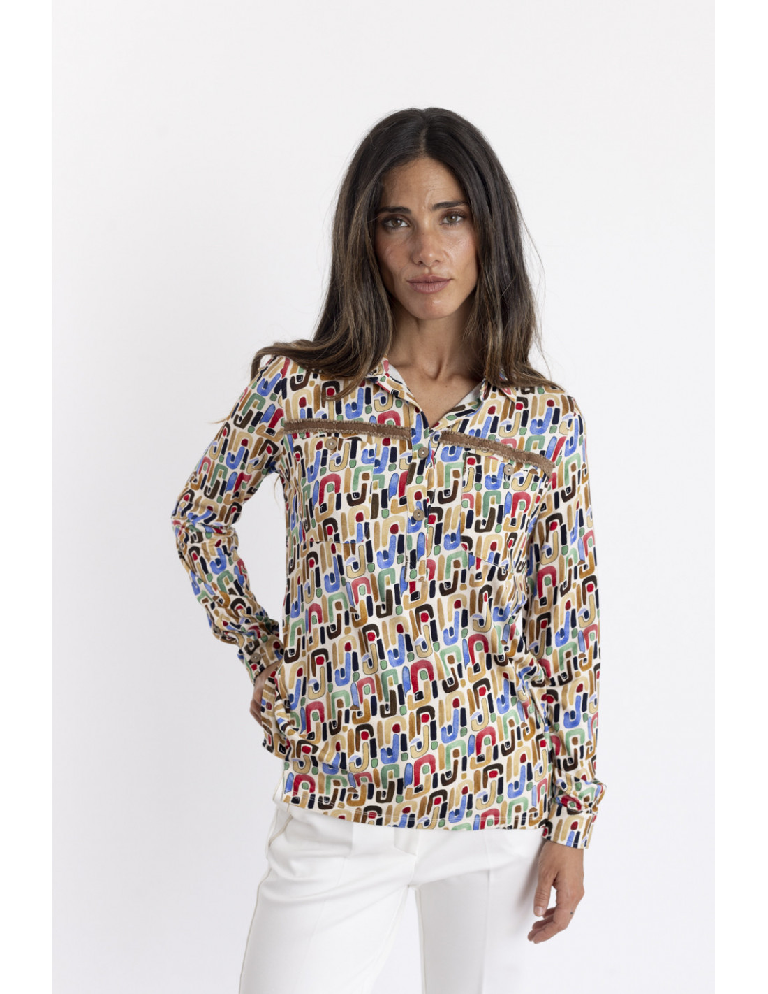 Camiseta Print Geometrico Con Botonadura BMB & Co.