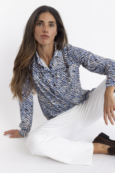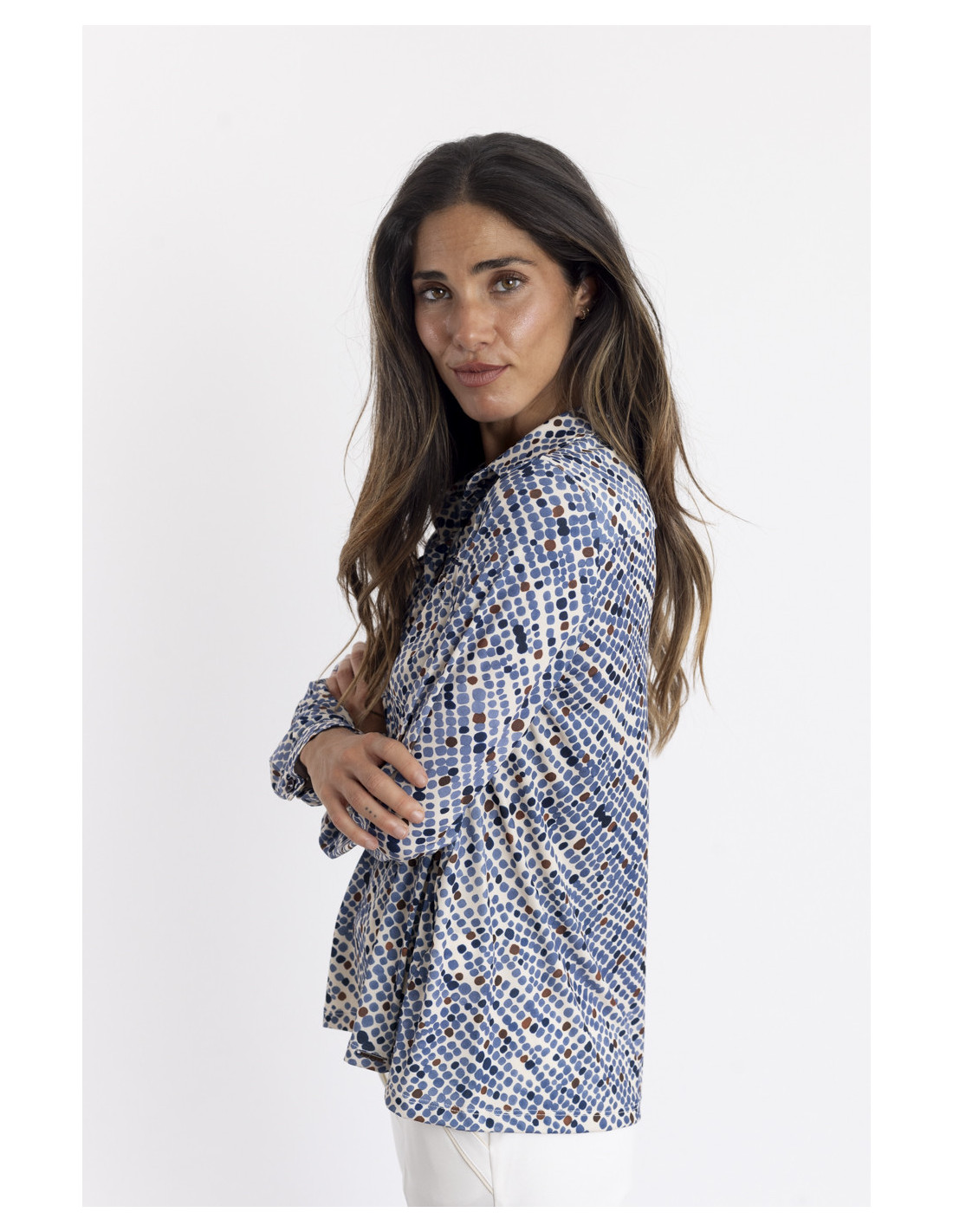 El modelo MACA, la comodidad del tejido que hace efecto segunda piel, con el patrón clásico de una blusa con media botonadura se funden para crear este básico imprescindible en tu armario