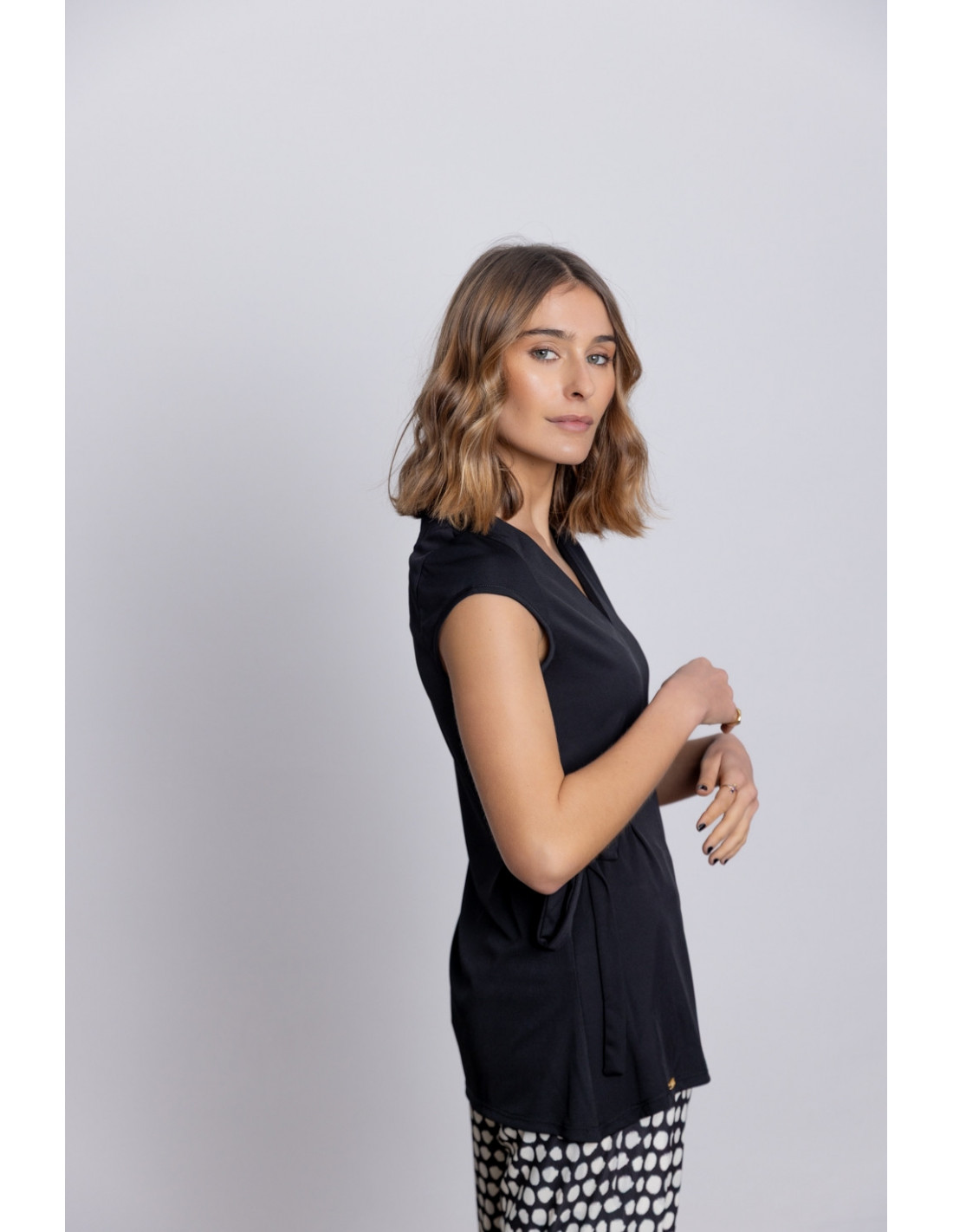 -Cinturón del mismo tejido para ajustar lateral