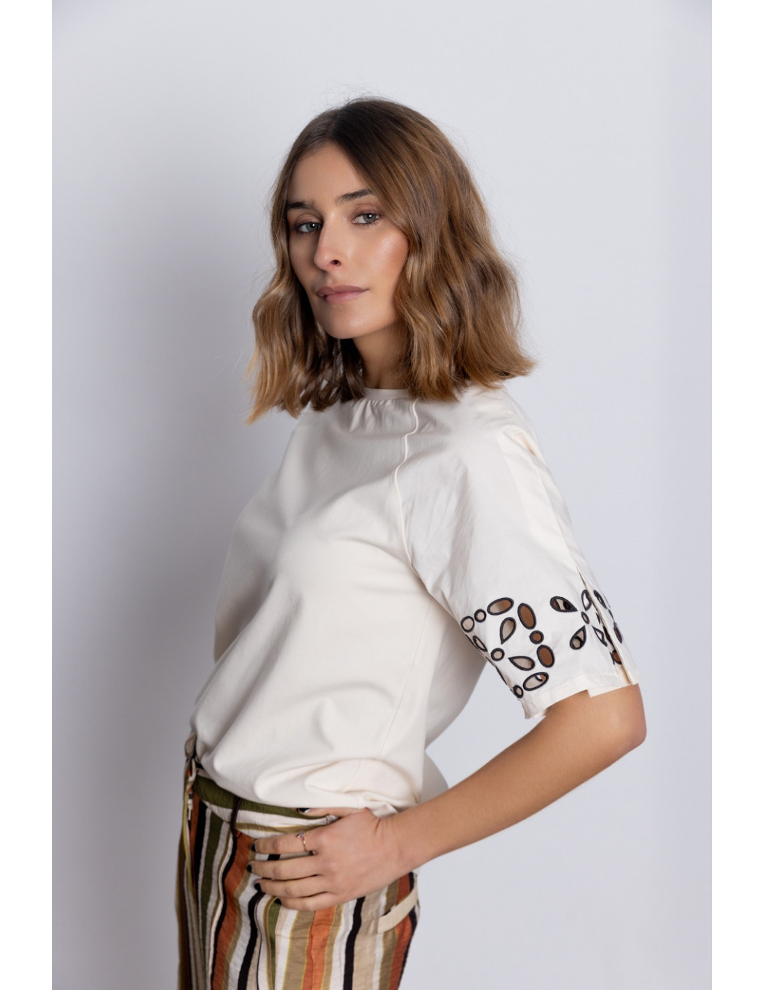 -Manga corta con calados bordados