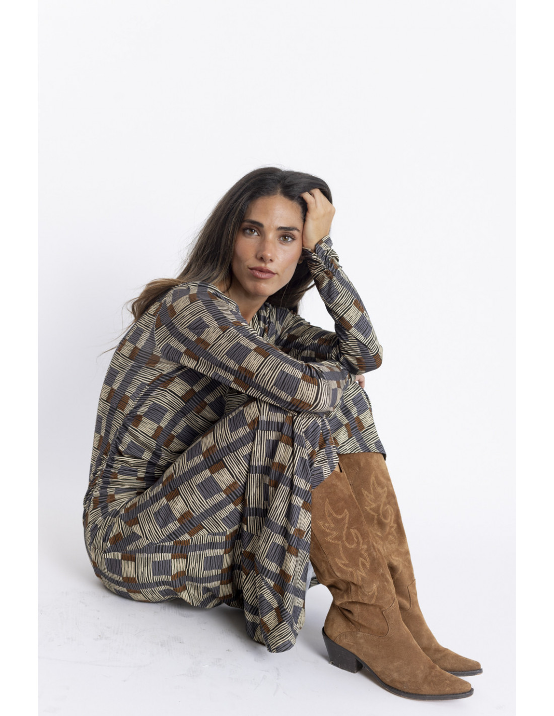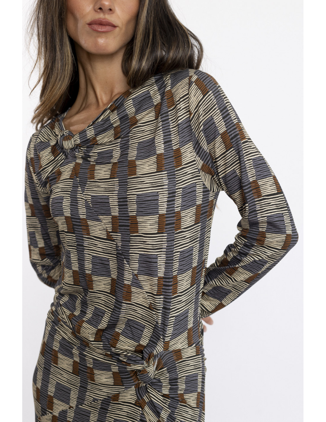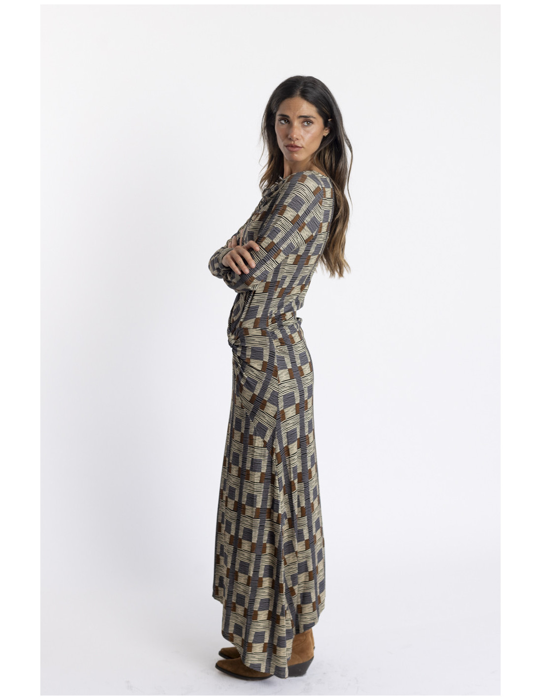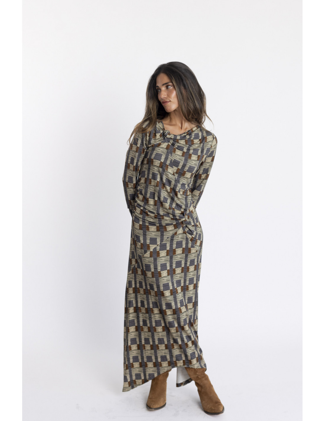 El vestido EKIALDE es un vestido midi que realza tu silueta gracias a su tejido con stretch. Los nudos en el escote y lateral aportan el detalle especial que lo hace único.”