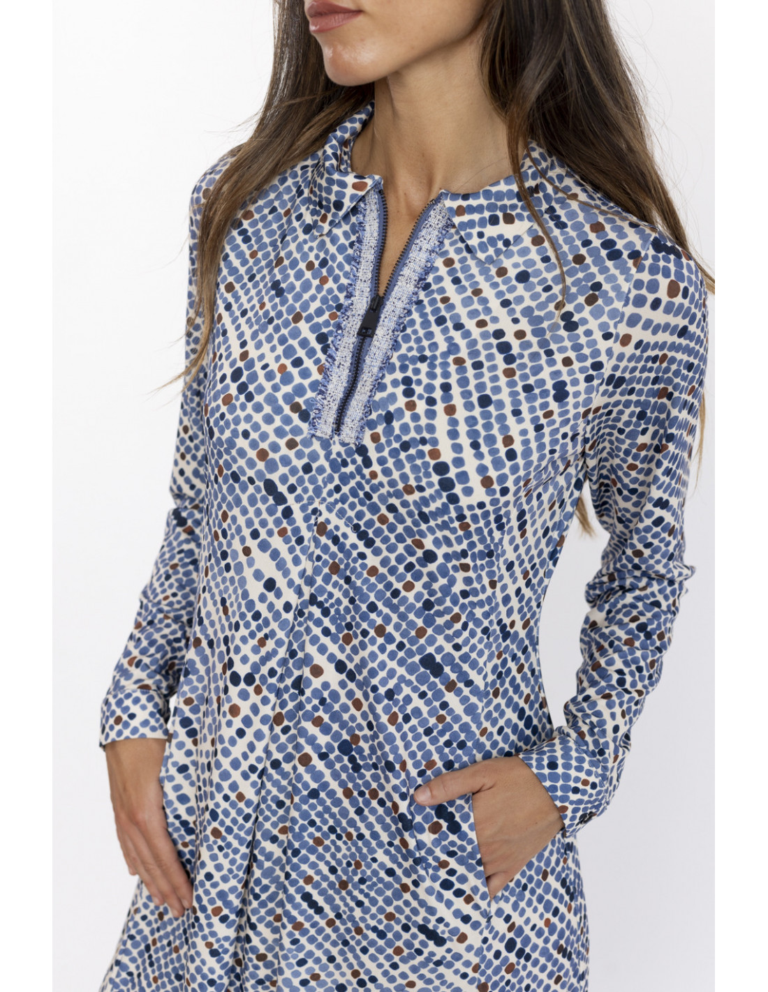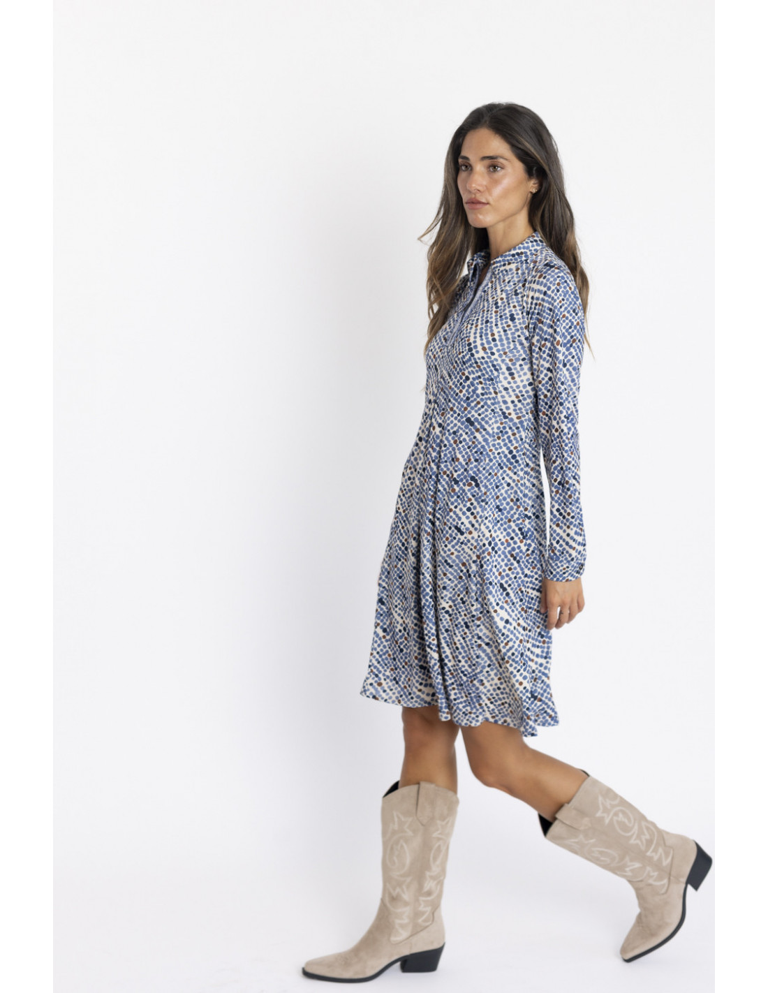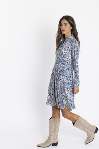 Lunares atemporales en un corte camisero corto que te acompaña con estilo desde el primer día de la temporada.